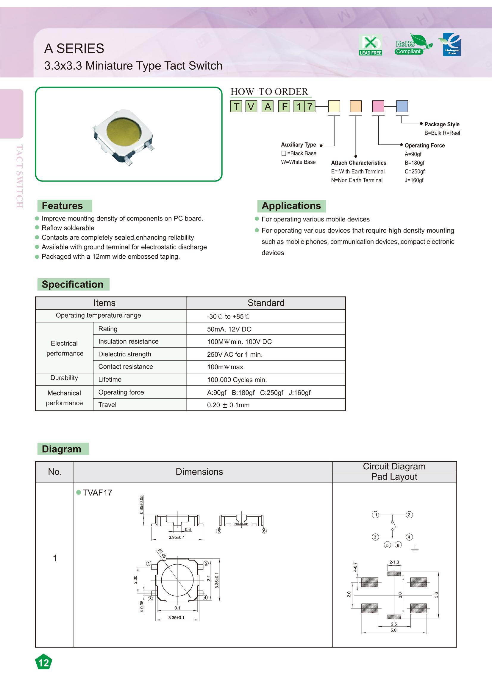Нагрузка контакта DC: 0,05A / 12В DC;