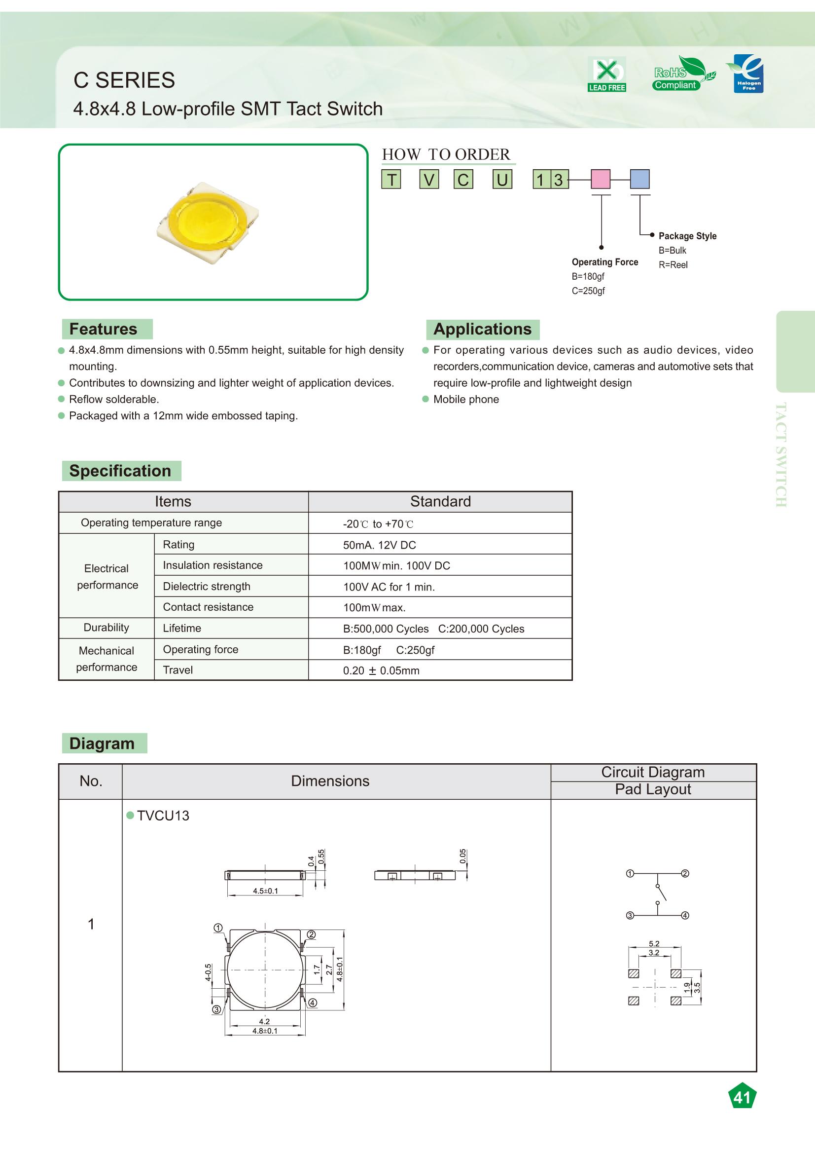 Микропереключатель TACT; Положения:2; 0,05A/12ВDC; SMT; OFF-(ON).