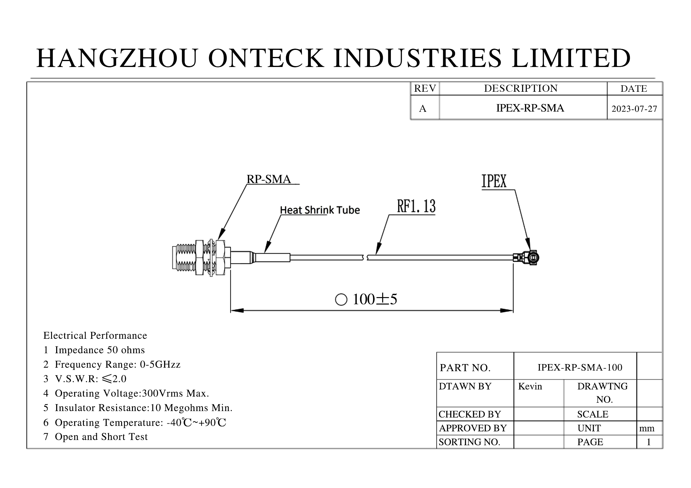 IPEX-RP-SMA-100Артикул: 775802 Cable; 0.1m; IPEX female angled,RP-SMA female; black. Производитель: ONTECK |