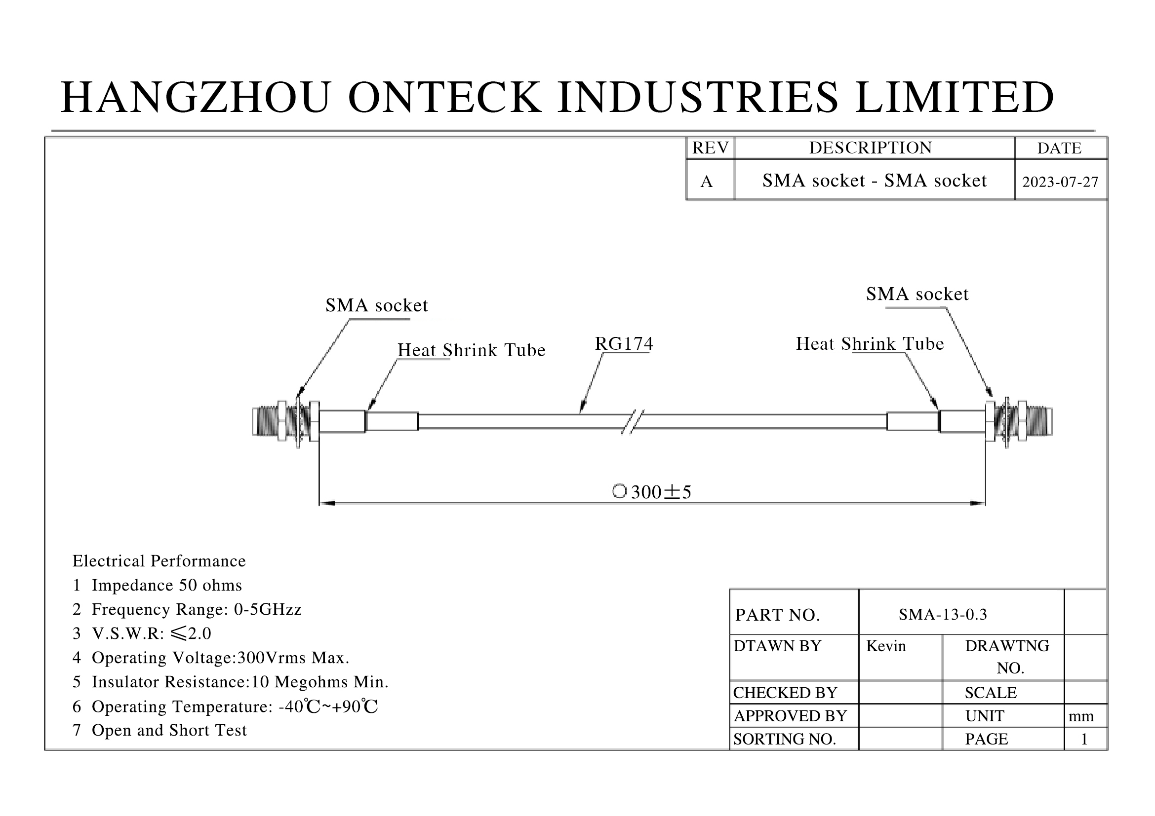 SMA-13-0.3Артикул: 775850 Кабель; 50Ом; 0,3м; SMA гнездо,с обеих сторон; черный; прямой. Производитель: ONTECK |